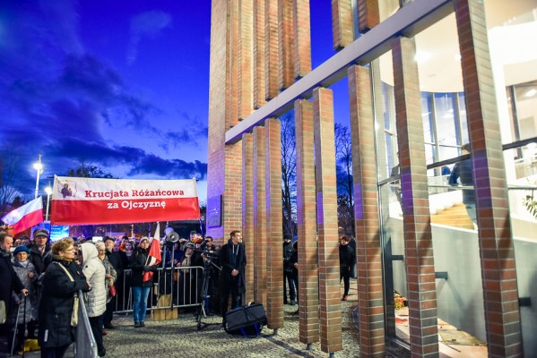 Wystawa jest czynna do 11 sierpnia w Centrum Sztuki Współczesnej w Toruniu i na pewno warto na nią przyjechać. Nam dzisiaj towarzyszyła krucjata różańcowa. Tłum ludzi w płaszczach z symbolami krzyża modlił się pod drzwiami wystawy. Większość stała, ale byli i tacy, którzy leżeli krzyżem na ziemi. Myślę, że Marina powinna być z tego performansu zadowolona?