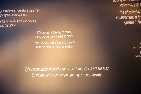 Ale wystawa to tez mnóstwo zdjęć, pamiątek i innych gadżetów uwieczniających pokonywanie przez Marinę murów, limitów i budowanie emocjonalnego związku pomiędzy Artystką a widzem.