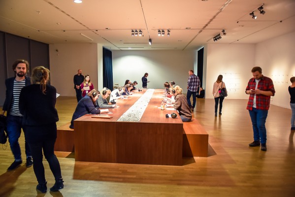 Wystawa jest ciekawa, prezentuje dużą część dorobku Mariny, zajmuje dwa piętra i potrzeba na nią ciut więcej czasu, niż na wernisażu przewidziano. W dniu otwarcia, wystawę uświetniły też reperformanse młodych artystów i artystek, odtwarzające performanse Mariny. Było jedzenie cebuli, przeciskanie się między nagimi artystami, by przejść dalej ( przeciskalibyście się przodem do artystki, czy artysty?), był kultowy już chyba stół i dwa krzesła z performansu the Artist is Present.