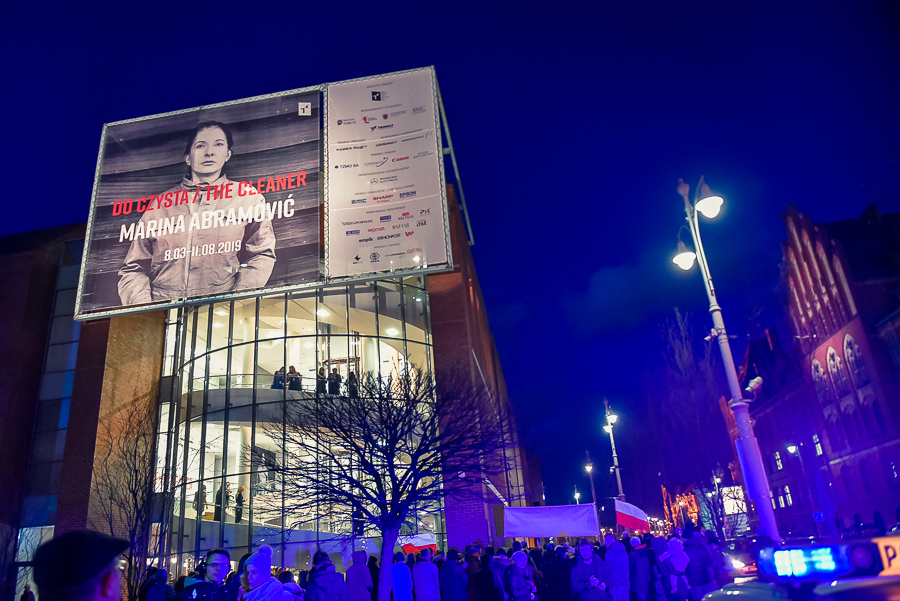 Wystawa jest czynna do 11 sierpnia w Centrum Sztuki Współczesnej w Toruniu i na pewno warto na nią przyjechać. Nam dzisiaj towarzyszyła krucjata różańcowa. Tłum ludzi w płaszczach z symbolami krzyża modlił się pod drzwiami wystawy. Większość stała, ale byli i tacy, którzy leżeli krzyżem na ziemi. Myślę, że Marina powinna być z tego performansu zadowolona?